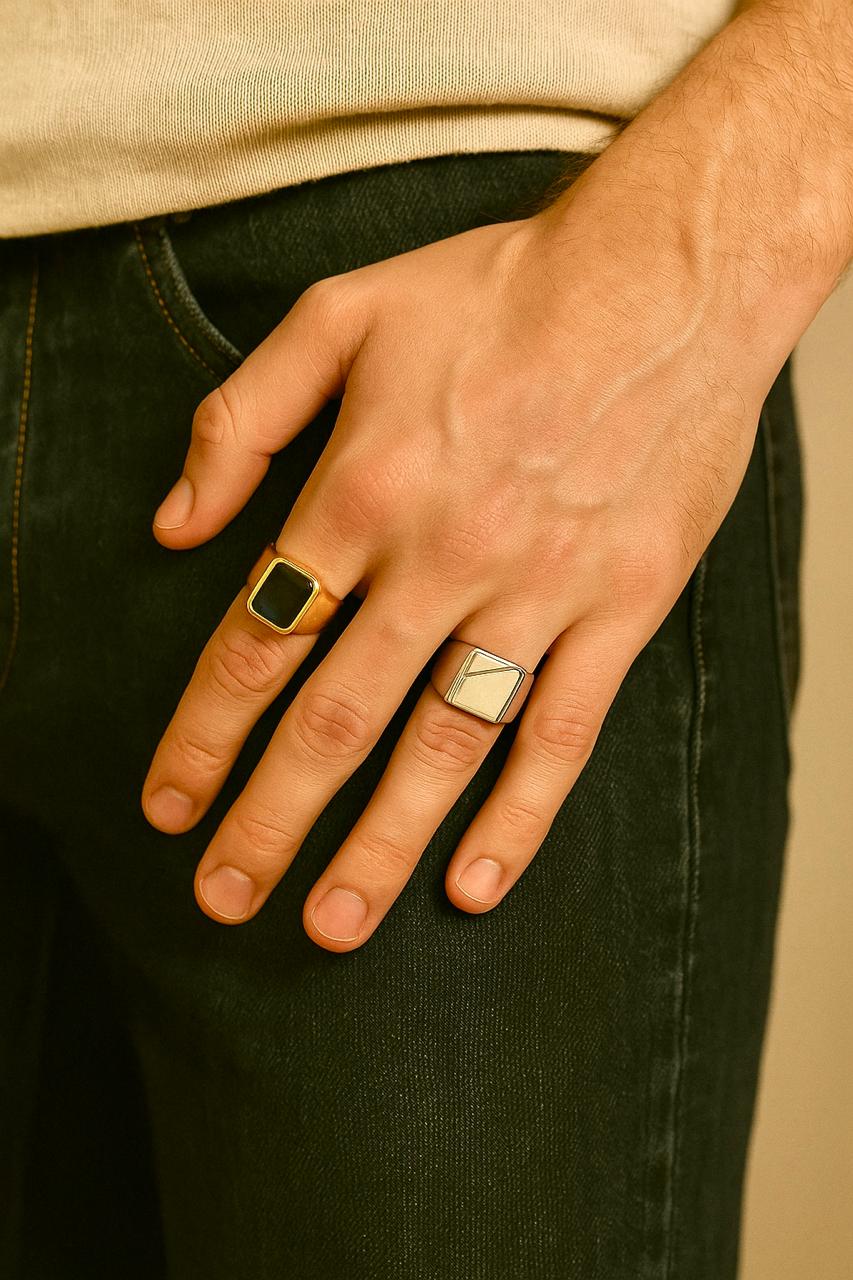 Anillo de plata cuadrado con diseño de línea cruzada, grosor amplio.